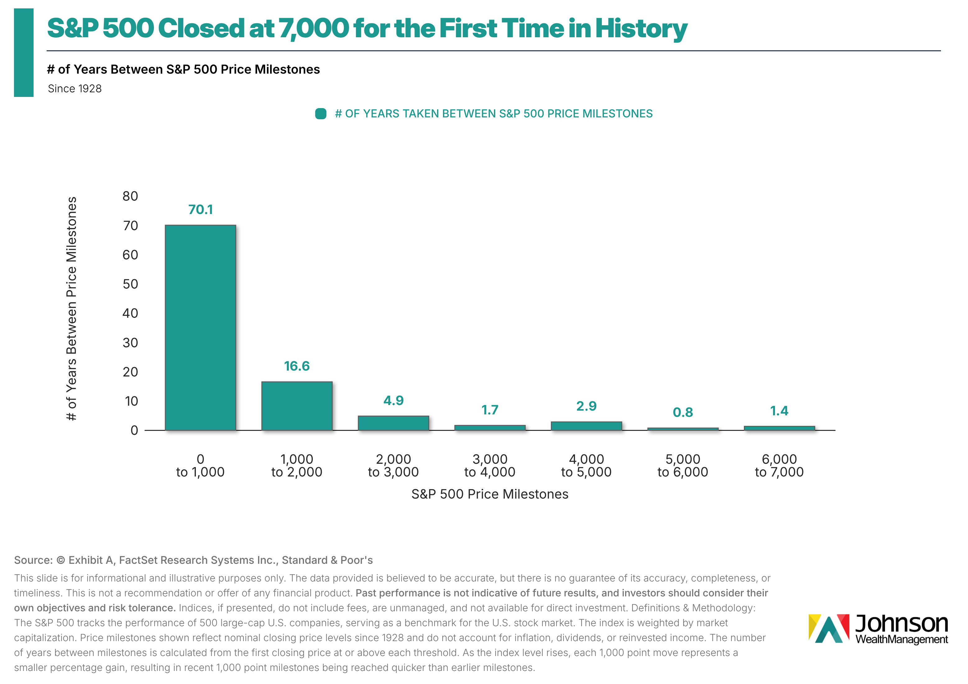 While the index took 70 years to reach 1,000 points, it has taken nearly a year and a half to go from 6,000 to 7,000.