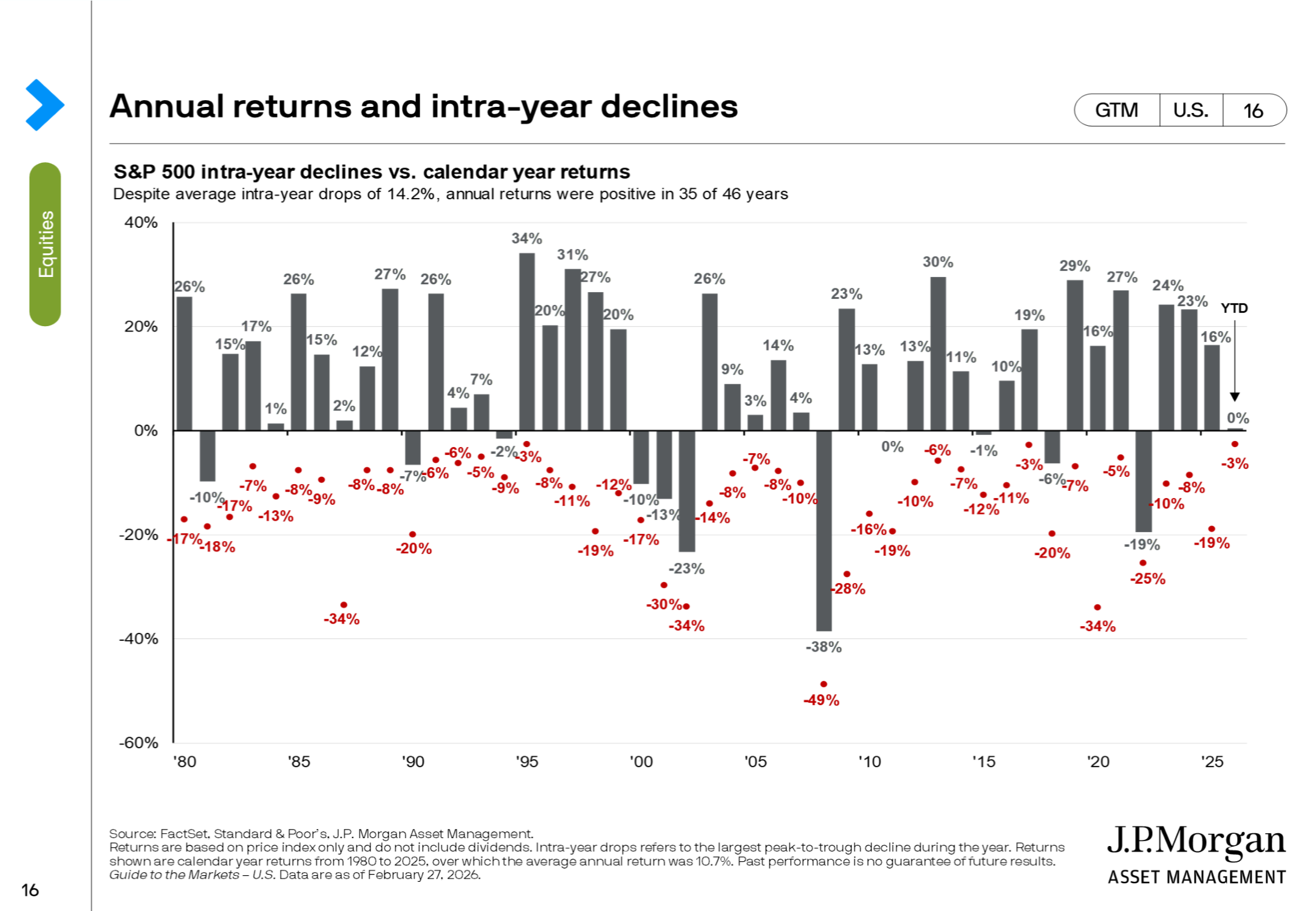 But 14%, since 1980, according to JPMorgan, is the average, which is a useful metric—though not a perfect one—in setting investor expectations.1