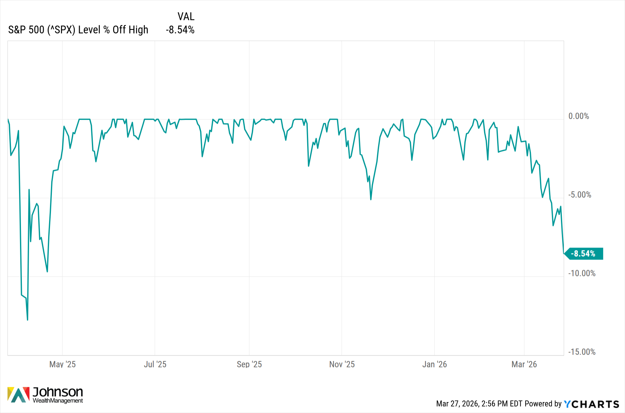The S&P 500—the index of the largest stocks in America—is currently off around 9%.